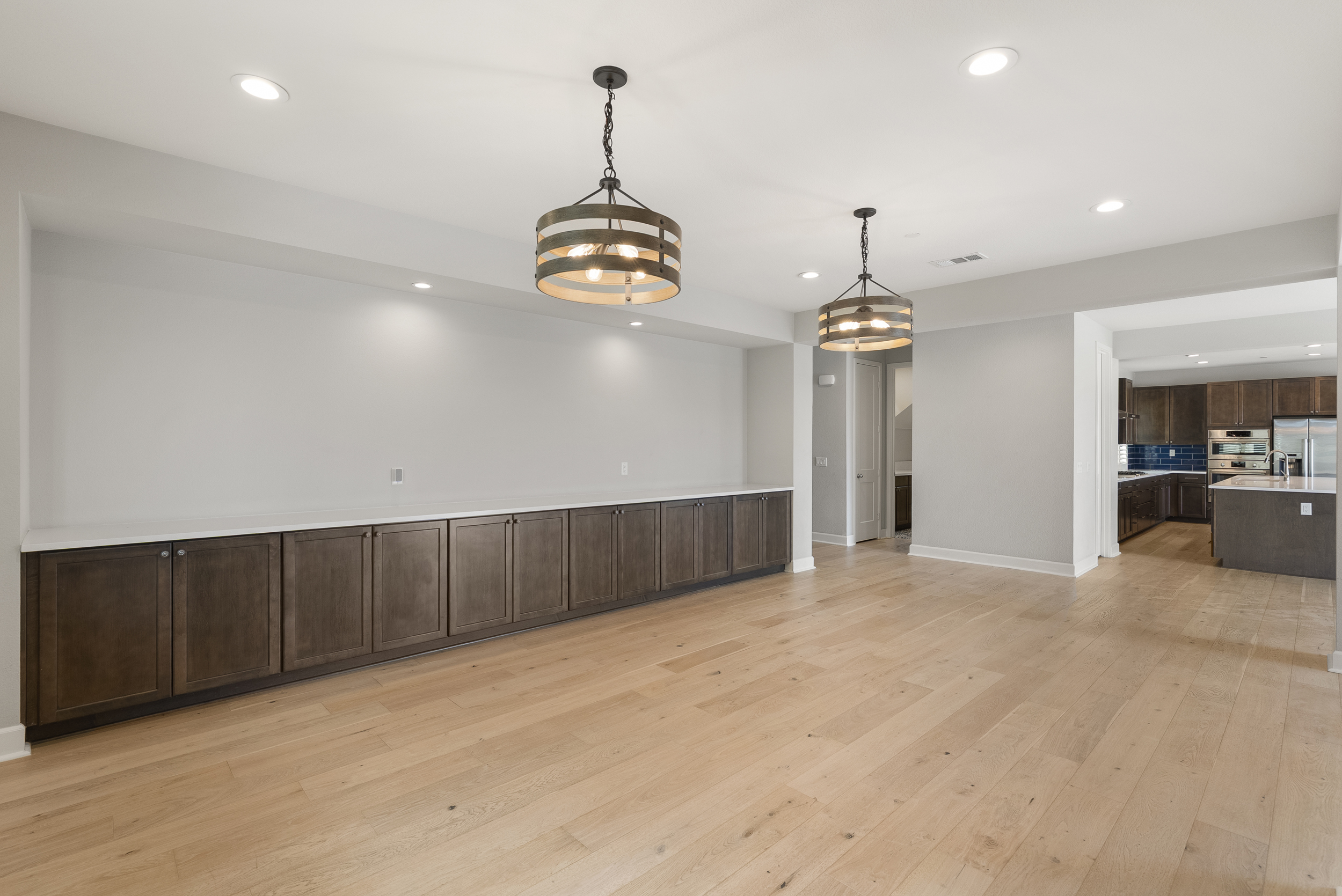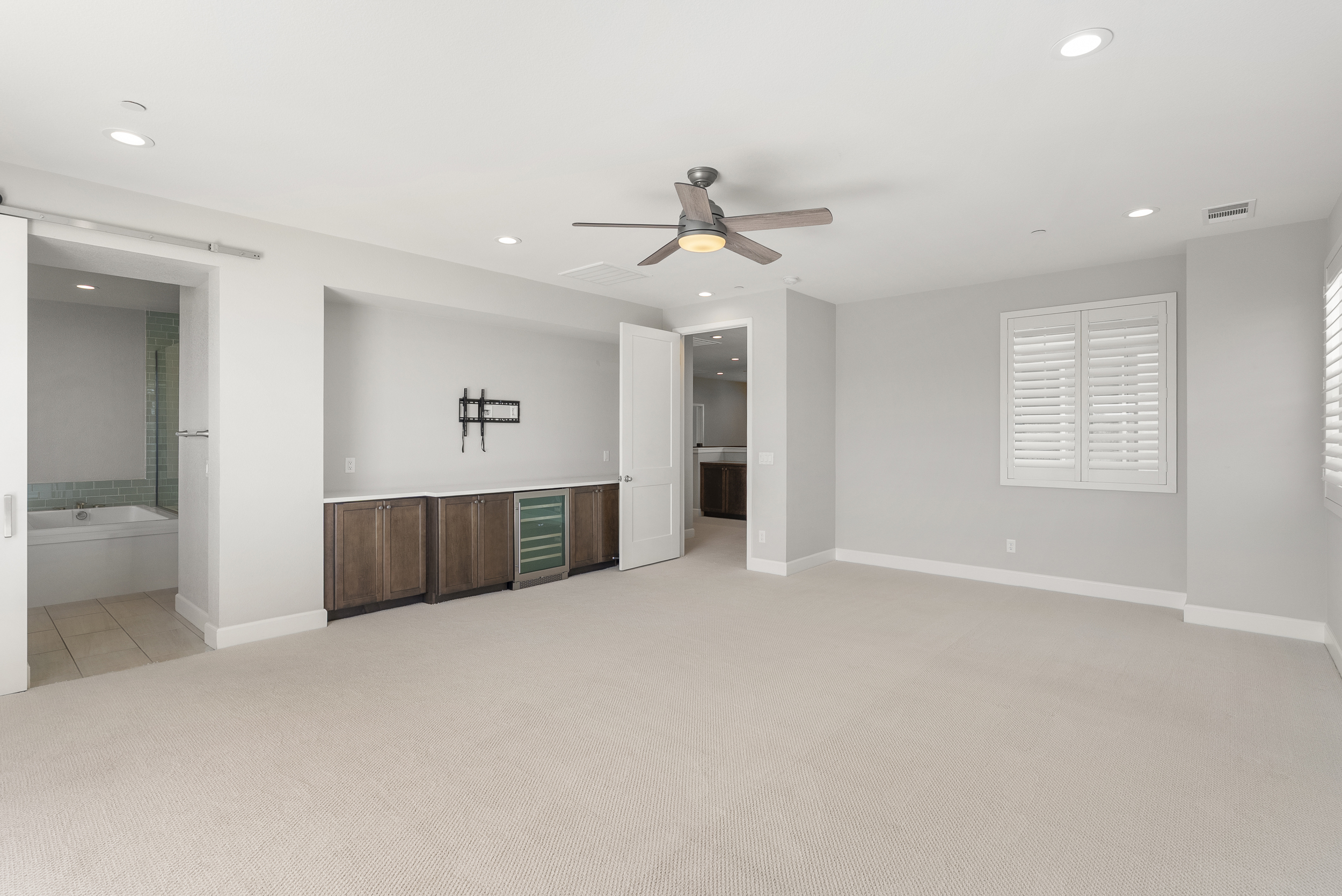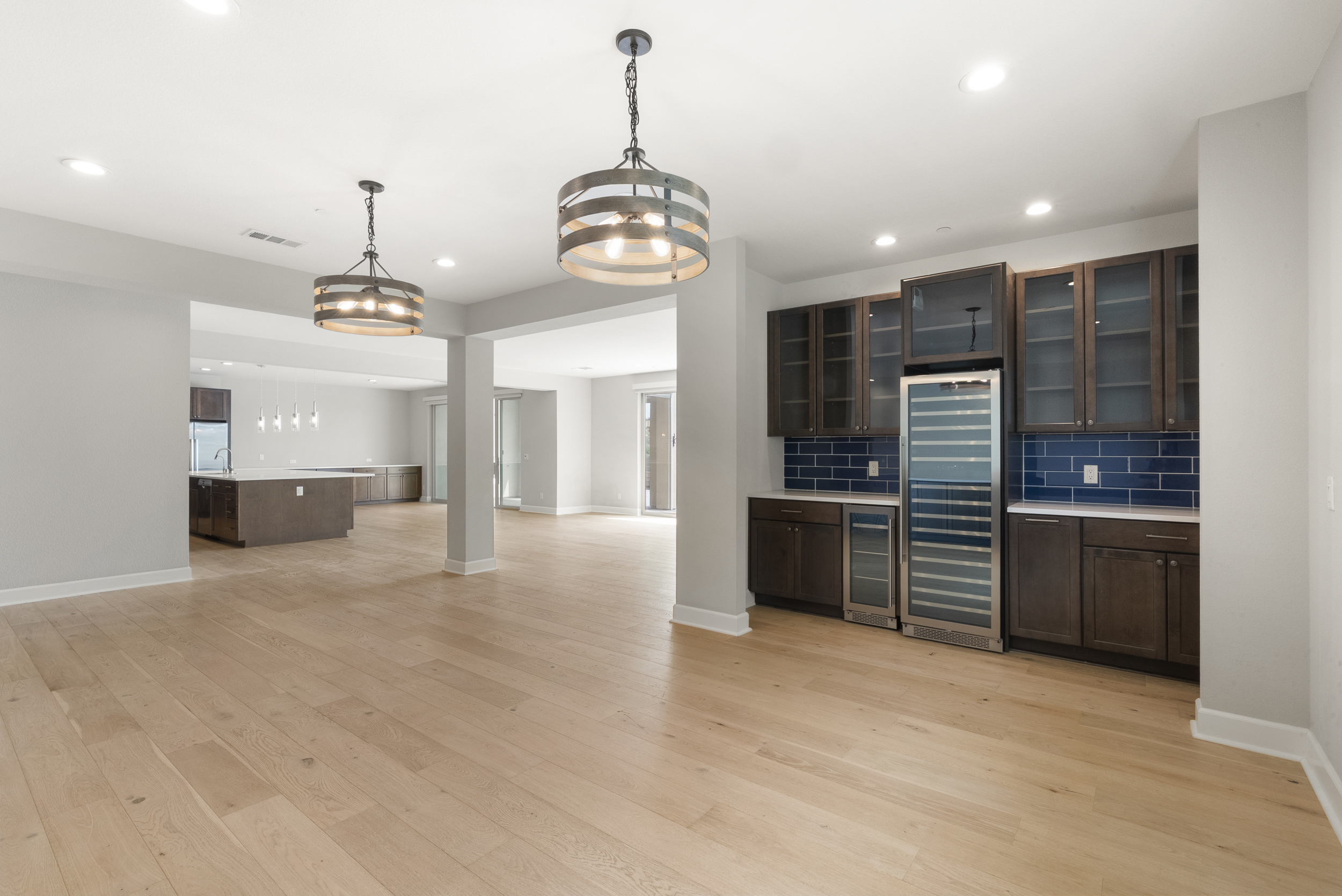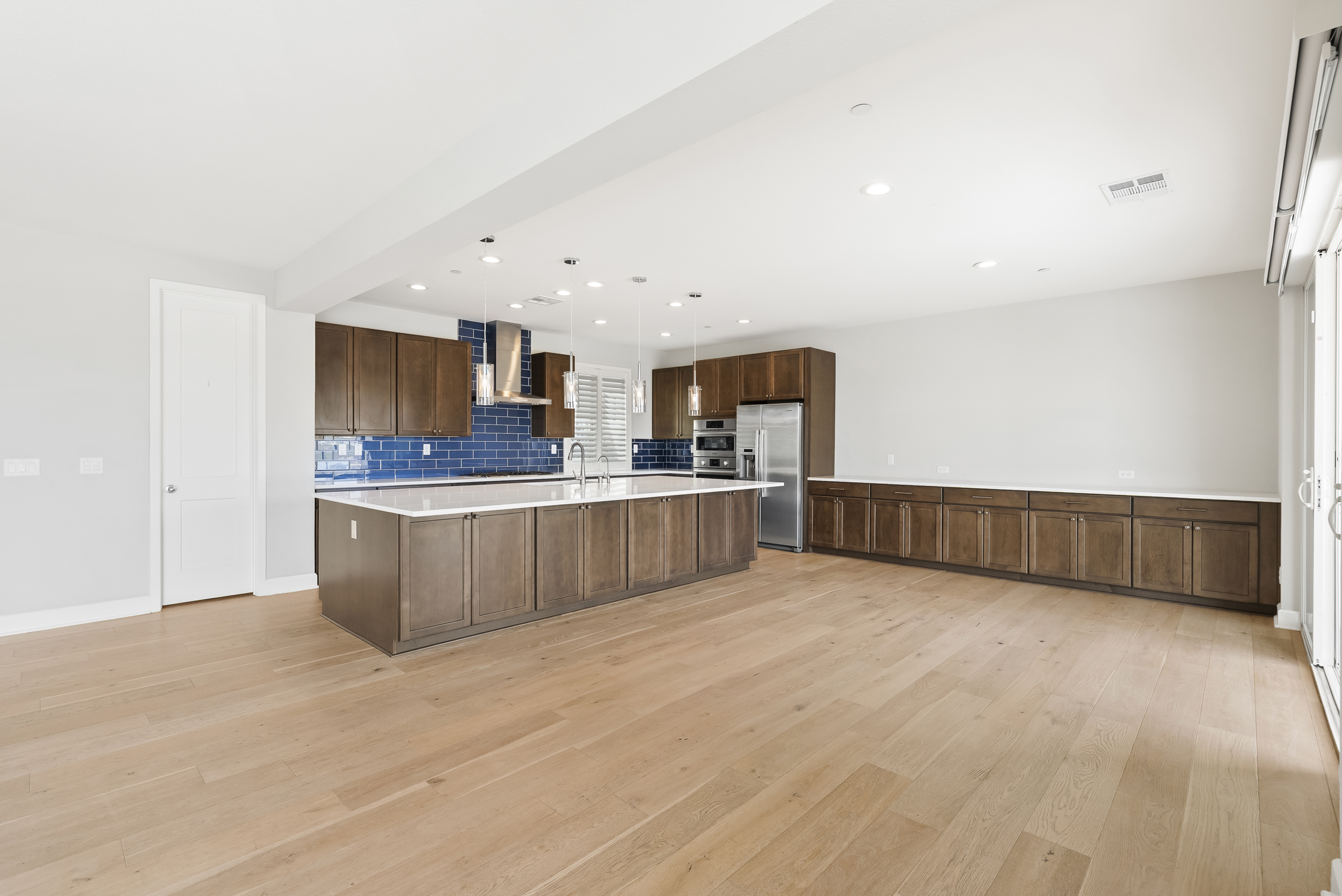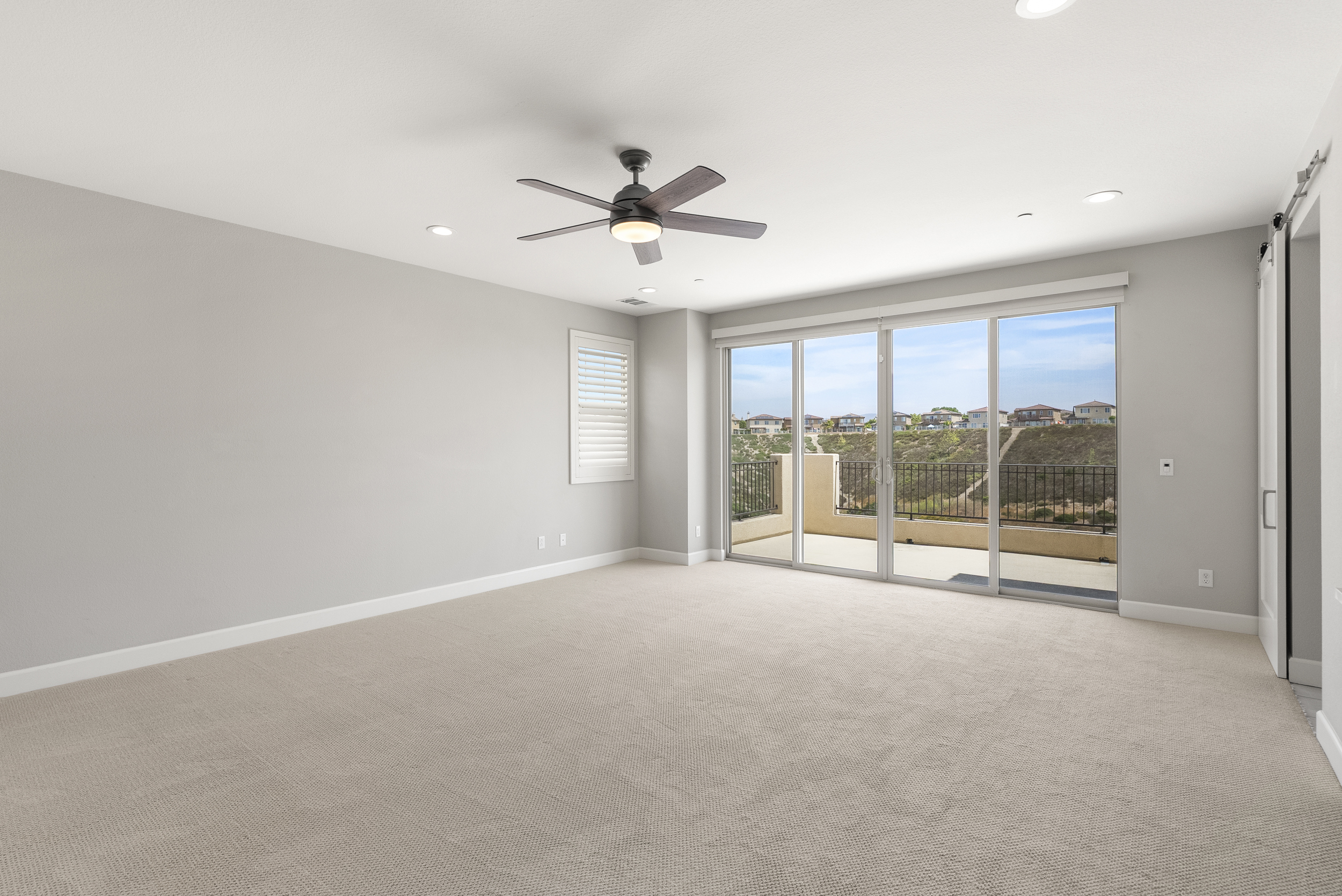 Perfectly positioned on a premier view lot with open canyon and mountain views, this extensively upgraded 5-bedroom, 4.5-bath residence offers 4,118 sq ft, an attached casita with its own private entrance, pool/spa, and owned solar with battery storage. A dramatic two-story foyer introduces volume and natural light, leading into the heart of the home, where wide-plank hardwood floors connect the kitchen, family room, and dining areas. The kitchen is centered around an expansive island and features quartz countertops, Bosch appliances, a walk-in pantry, and a spacious daily dining area. The formal dining room is scaled for larger gatherings and anchored by a built-in buffet and dedicated bar area with wine refrigerators. The family room features a gas fireplace and opens to the outdoor living areas. The attached casita offers a private exterior entrance and dedicated patio that includes an open living space, walk-in closet, bath with walk-in shower, and kitchenette and also connects to the main home. A half bath completes the main level. Upstairs, the primary suite includes built-in cabinetry with a beverage refrigerator and opens to a private deck with stunning views. The spa-inspired bath includes dual vanities, a soaking tub, an oversized walk-in shower with a bench and dual shower heads, and two walk-in closets. Two additional bedrooms share a Jack and Jill bath, and an ensuite bedroom offers its own private bath. The laundry room completes the upper level. Outdoors, the California room extends the living area, complete with fireplace, ceiling fan, recessed lighting, and motorized drop-down screens. The pool with an elevated spa and Baja entry has unobstructed views framed by glass fencing. A turfed side yard with a privacy hedge and fruit trees adds usable space. Additional features include 11.90 kW solar, a 10 kW battery, plantation shutters, motorized shades, whole-house water filtration, reverse osmosis, an epoxy garage floor, and a Tesla charger.